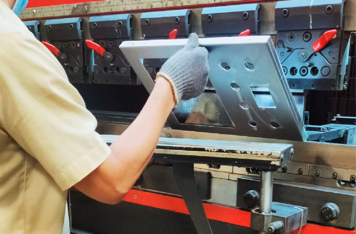 Proses tekuk produk dengan menghasilkan kepresisian dan radius yang tepat. Kami menggunakan mesin AMADA AM1003.